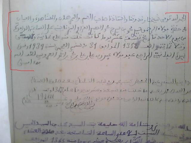 هذا تقييد لوفاة شيخ الزاوية الهبرية بخط يدي جدي الكريمتين علي بن علي لعروسي،ونص الإجازة المسلمة لجدي من الشيخ سيدي محمد الهبري رحمه الله.
