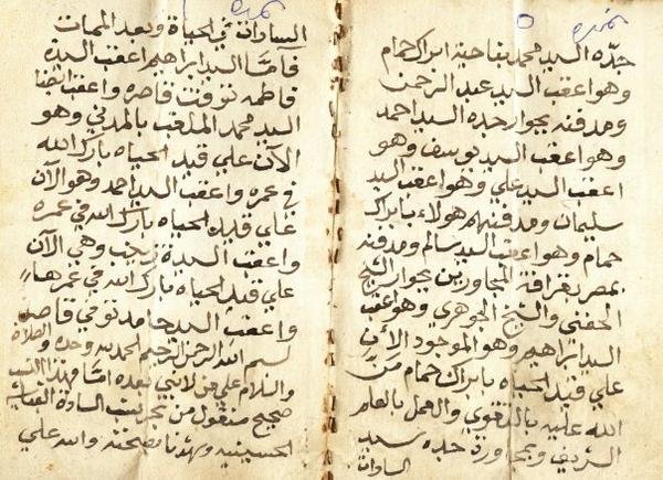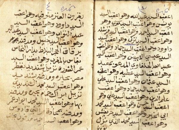 فانتم اولاد اما احمد او محمد المدني اولاد ابراهيم بن سالم بن سليمان بن علي بن يوسف بن عبد الرحمن بن احمد بن محمد ابو اعمر(كذا) بن محمد بن عمر (السوده) - كذا-بن خليل دفين زقاق الحجر /المغرب بن عبد البر بن عبد التواب بن داوود بن محمد /نزيل المنوفيه قرن العنز بن حريفش(كذا) بن محمد ابو الخير بن حسن بن علي بن علم الدين بن حماد بن علي بن عثمان بن عطيه بن عبدالله الحلفاوي (معبد) بن عيسى ألأبيض بن حماد بن داوود بن تركي بن قرشله الى آخر النسب..