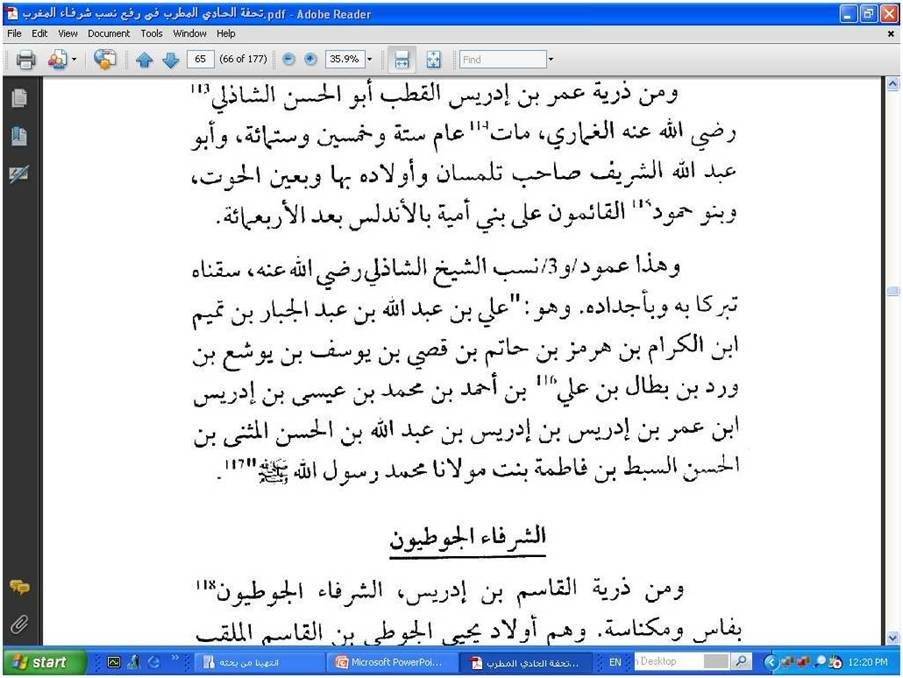 [1] نور الأبصار للشلبنجي (ص225-226). وقد ذكر أحمد ابن عطاء الله السكندري في كتاب " لطائف المنن في مناقب الشيخ أبي العباس المرسي وشيخه الشاذلي أبي الحسن " نسب الشاذلي هذا بالوجه الشاذ المثبت ههنا ، ولم يتعقبه. انظر: (ص 41). ط: المكتبة العلامية ، بجوار الأزهر بمصر ، بدون تاريخ سنة الطبع .