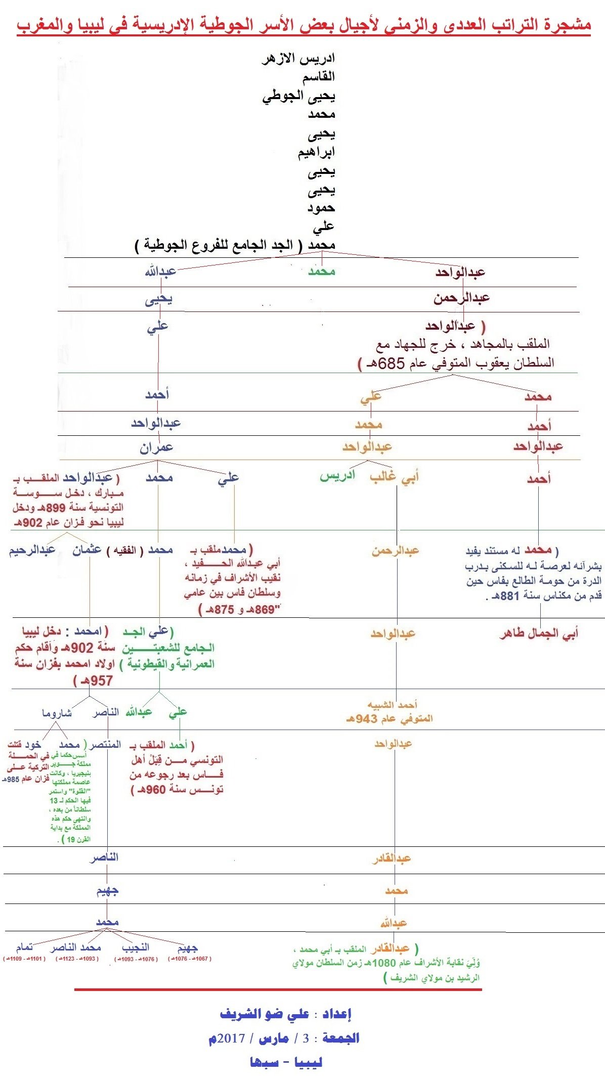 مشجرة التراتبية العددية والزمنية للأجيال الجوطية الإدريسية الشريفة في ليبيا والمغرب