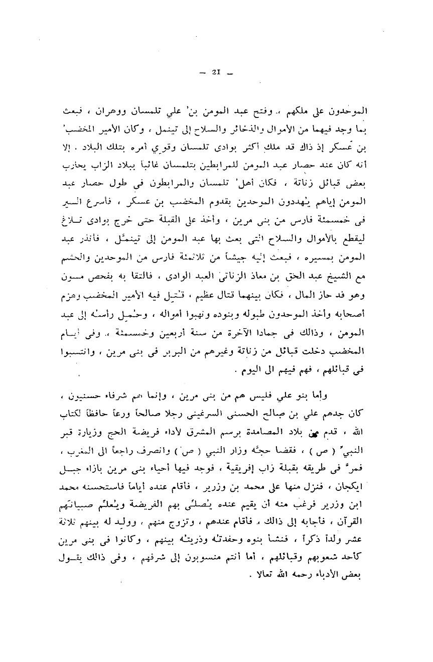 حتى لا نظلم السنوسيين بسبب ما كتب عن الزيانيين ، وخاصة موضوع من حكم تلمسان أولا ، أورد فيما يلي ما جاء في كتاب الذخيرة السنية في الدولة المرينية وهو سابق عن يحي بن خلدون وحشلاف والسنوسي والعشماوي ... الصفحتان 20 و21 يشير الكتاب الى تملك المخضب بن عسكر وهو من بني مرين تلمسان وناحيتها وأن سيطرة المخضب بن عسكر على ناحية تلمسان انتهت مع الموحدين قصة حصار تلمسان ومحاولة المخضب الظفر بغنائم الموحدين جاءت في كتابي الذخيرة السنية وبغية الرواد لكن كل بطريقته وسأعرض للقصتين هنا .... السنوسي نقل الحكاية بطريقته أيضا ربما لم يحسن إيصال المعلومة هذه لكن بنو مرين سيطروا على تلمسان والنواحي كما جاء في الذخيرة ... وللحديث بقية http://aladdarssah.com/uploaded/1842_01419372716.jpg http://aladdarssah.com/uploaded/1842_11419372716.jpg http://aladdarssah.com/uploaded/1842_01419373602.jpg |