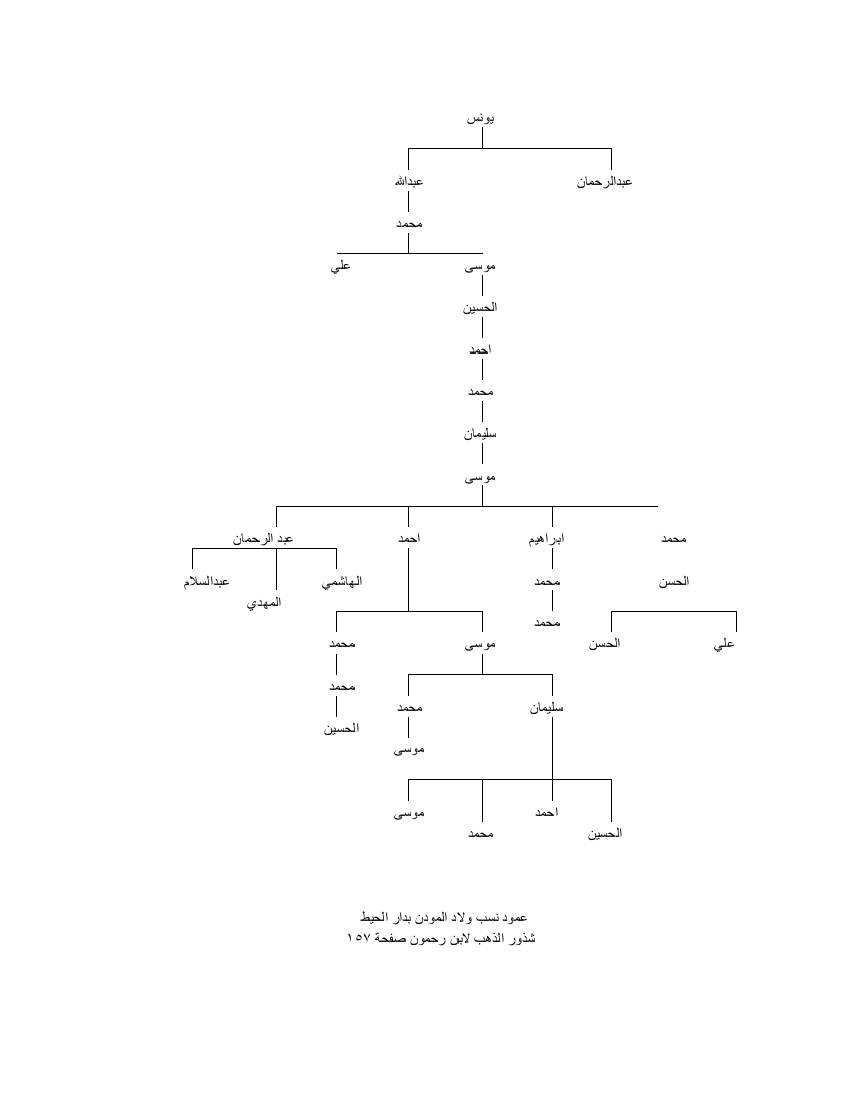 السلام عليكم ورحمة الله وبركاته بسم الله الرحمن الرحيم أرجو من سيادتكم أن تفيدونا في عمود نسب ولاد المودن بعد الجد علي بن محمد بن عبد الله بن يونس ولكم جزيل الشكر