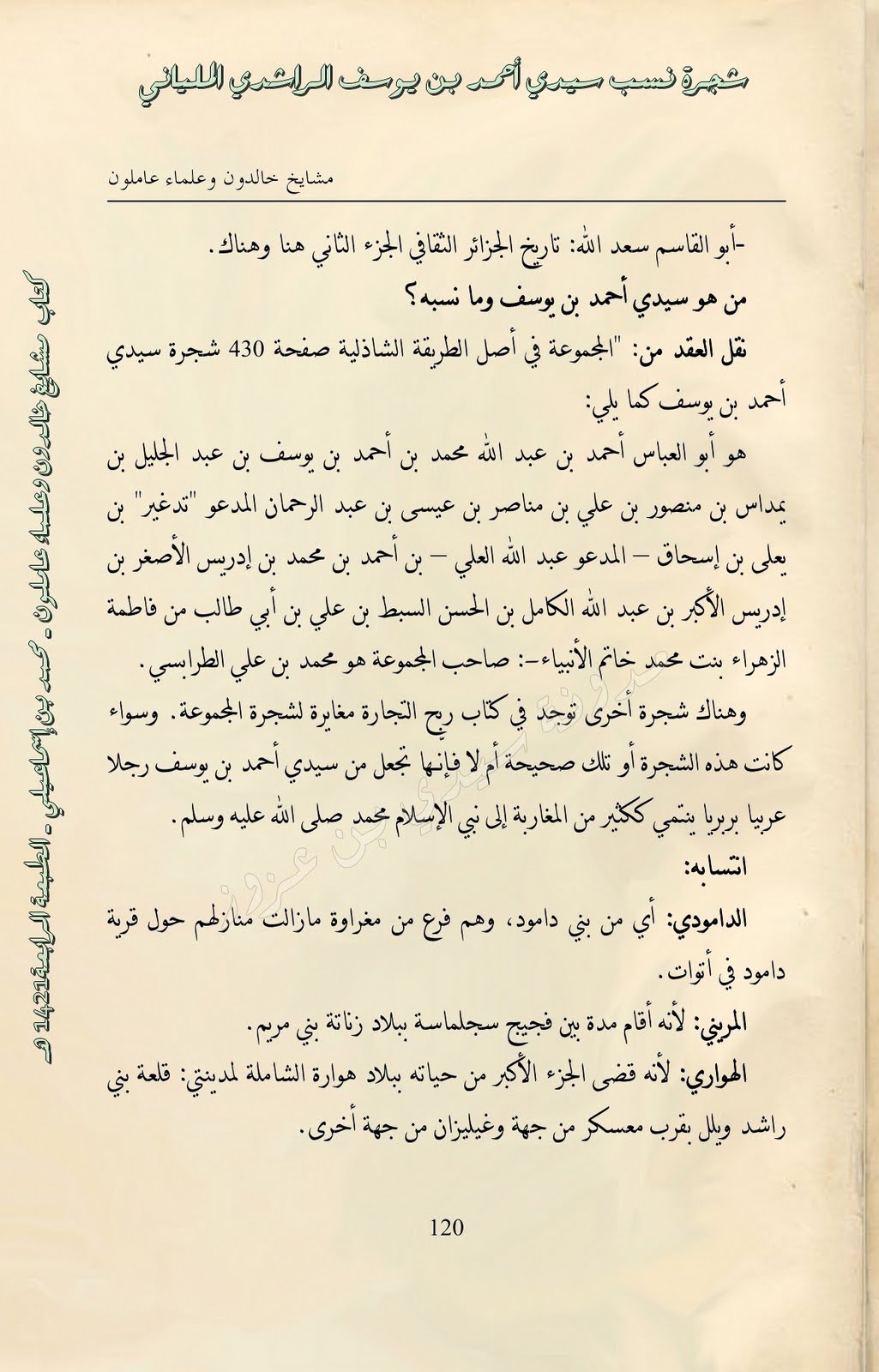 | أرغب في التعرف على سيدي احمد بن يوسف الملياني | اعوين محمد | استفسارات وطلبات ودراسات لأنساب الأشراف الأدارسة | 0 | 01-03-2013 01:34 PM |