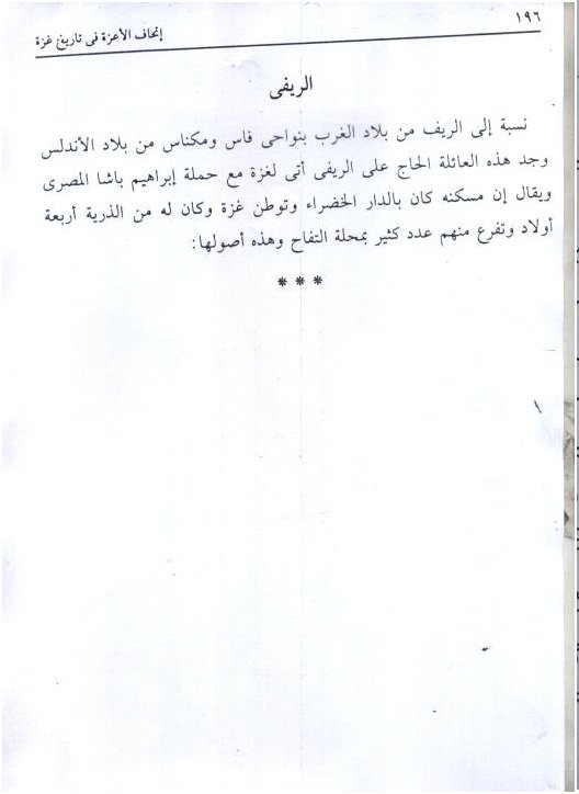 أقوال كبار السن منهم والبعض من أبناء عائلة الريفي بغزة،