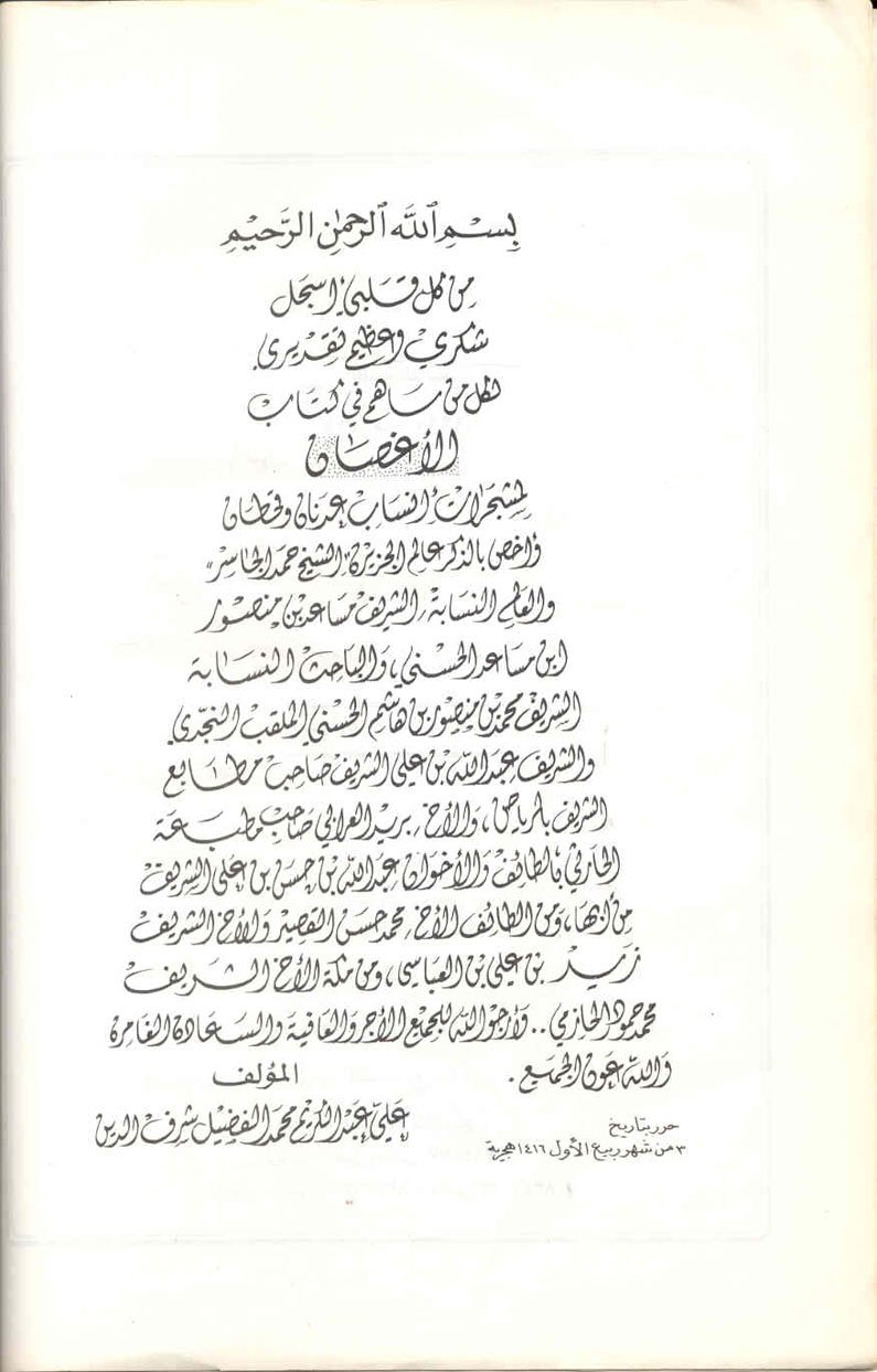 إن عمود النسب الذي سوف أتمسك به وأعض عليه بالنواجذ هو ما سمعتهُ من والدي ومن عميد آل التركي الشاذلية الأدارسة فقط وهو الذي سوف أبدأ بتدقيقه وتنقيحه وتوثيقه بما تيسر عندي إن شاء الله.