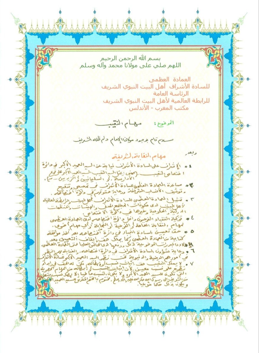 | السادة المراقب العام بديوان الأشراف الأدارسة و نائب نقيب الأشراف الأدارسة بالسودان | تاج زيان | استفسارات وطلبات ودراسات لأنساب الأشراف الأدارسة | 1 | 23-12-2010 09:32 AM |